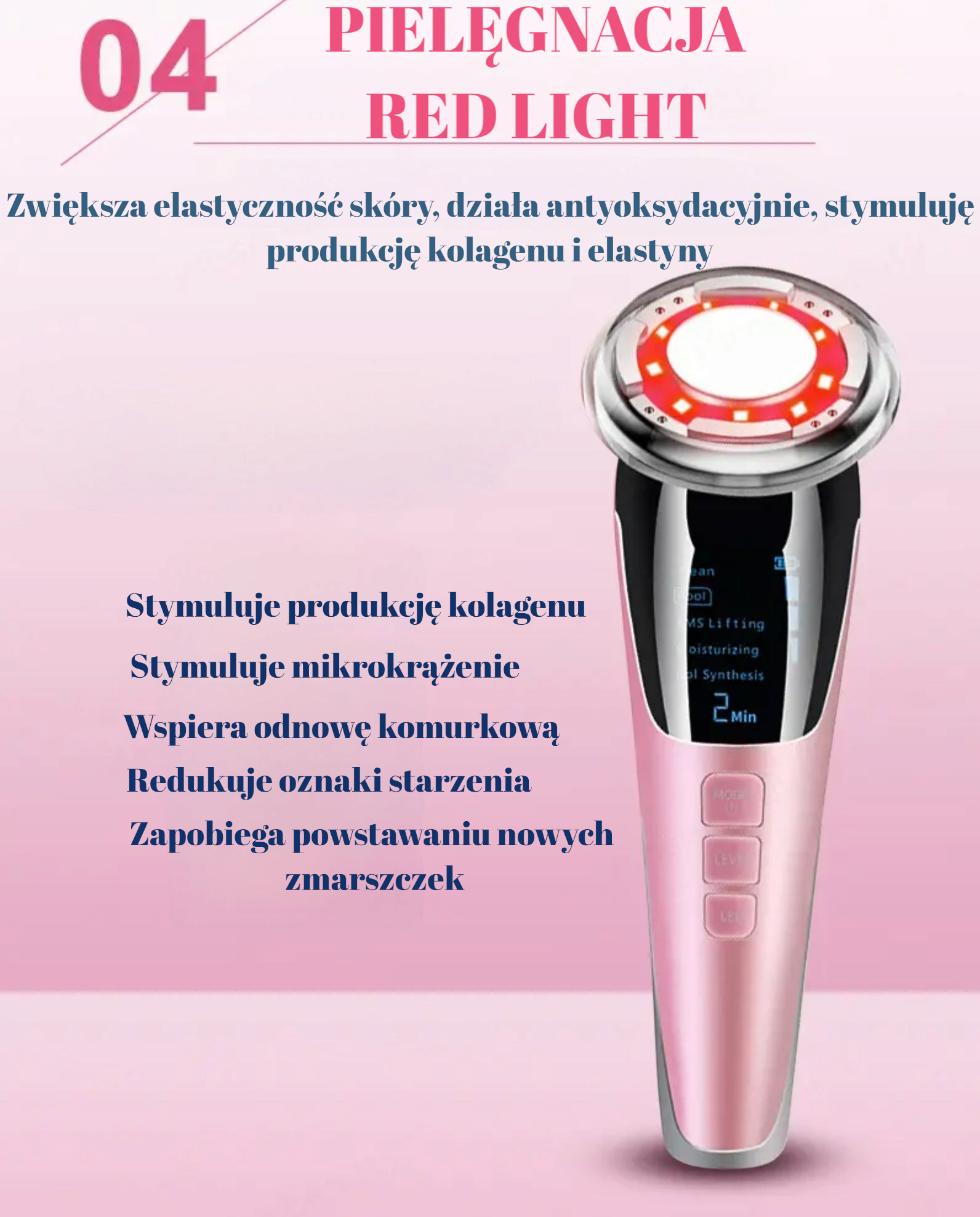 • 5 trybów pracy – dopasowanie do potrzeb skóry,