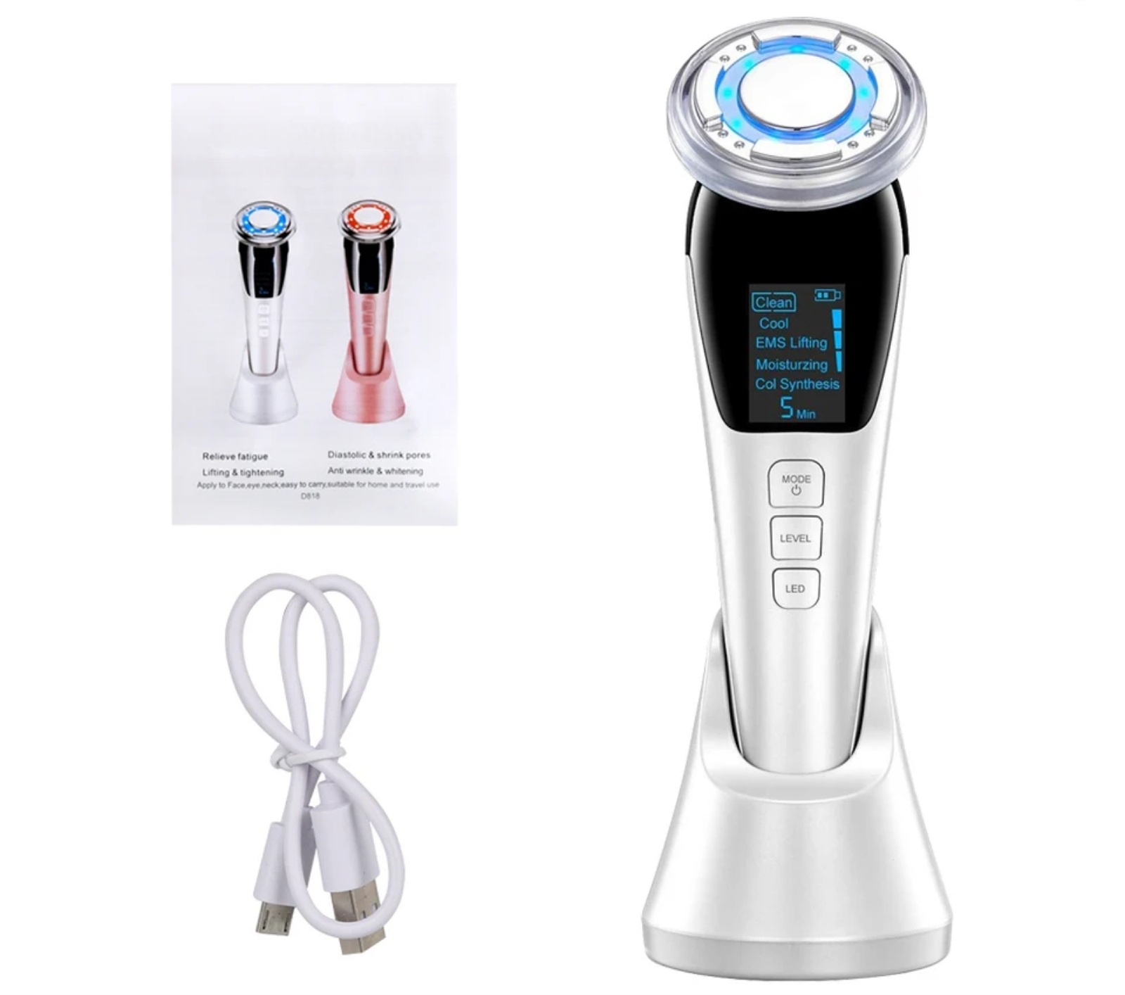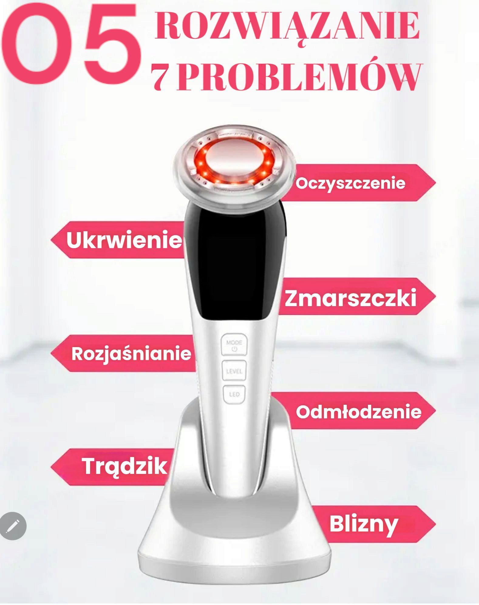 Wygładzaj zmarszczki, popraw kontur twarzy i przywróć skórze naturalny blask – bez igieł, bez bólu, bez wychodzenia z domu. Wszystko, czego potrzebujesz będziesz miała w jednym,  eleganckim urządzeniu.